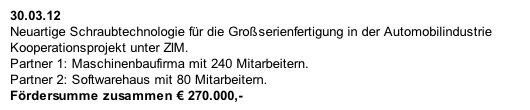 Insgesamt über 3,5 Mio € nicht rückzahlbare Fördergelder für den Mittelstand aus Förderprogrammen des Wirtsschaftsministeriums akquiriert.