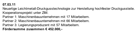 Partner 1: Aluminium Druckgussbetrieb mit 195 Mitarbeitern.